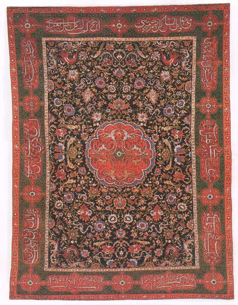 قالی سجاده ابریشمین زرباف با گل های برجسته ابریشمی ۱۶۳ در ۱۱۰ سانتیمتری از دوره صفویه به جای مانده است و در تاریخ هفتم اکتبر ۲۰۰۹ مصادف با پانزدهم مهر ۱۳۸۸ در حراج ساتبیز به عنوان یکی از گرانبهاترین قالیچه های جهان به مبلغ معادل ۲/۷۲۹/۲۵۰ پوند به فروش رسیده است.